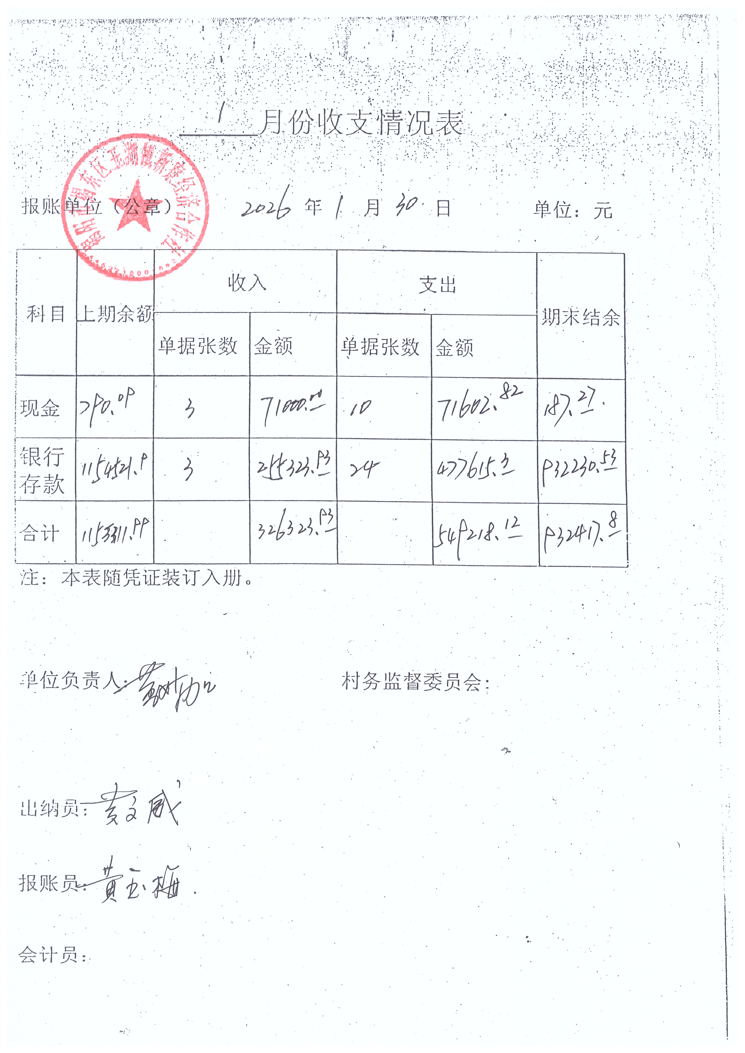 新寮村2026年1月份财务收支明细表