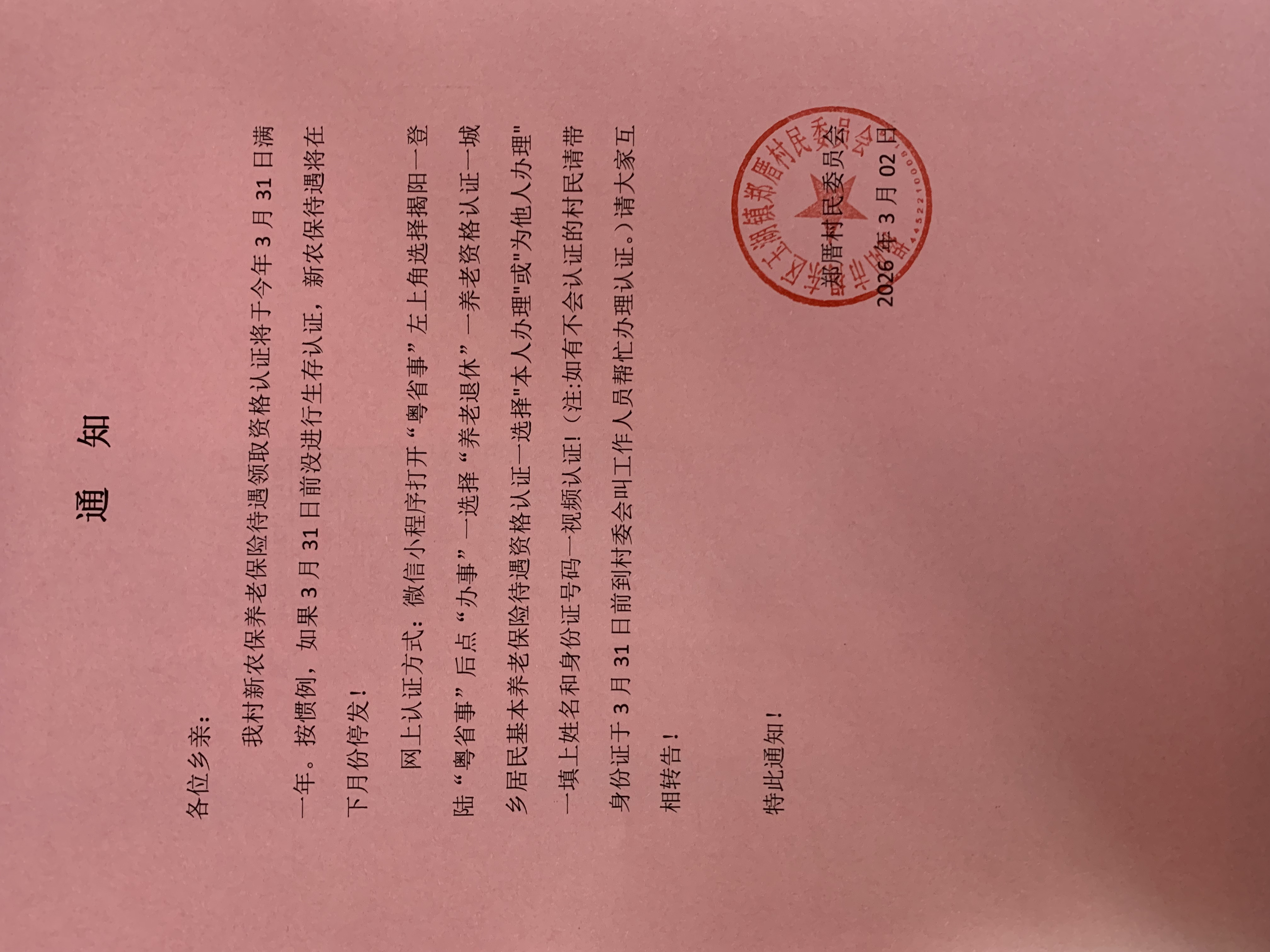 2026年养老待遇领取资格认证通知
