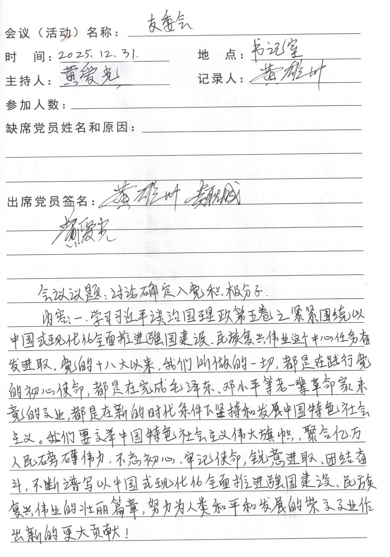 支委会--讨论确定入党积极分子