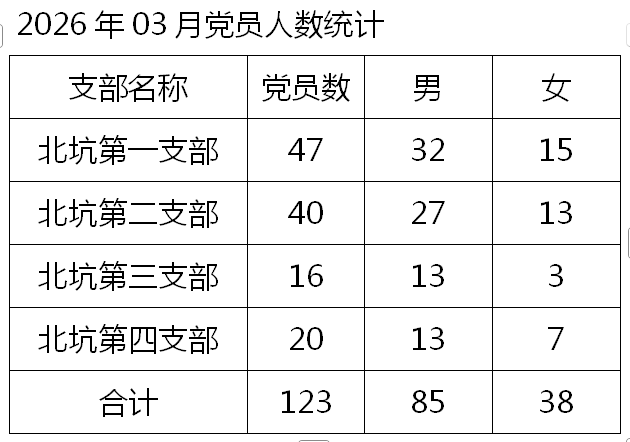 2026年03月北坑村党员人数统计