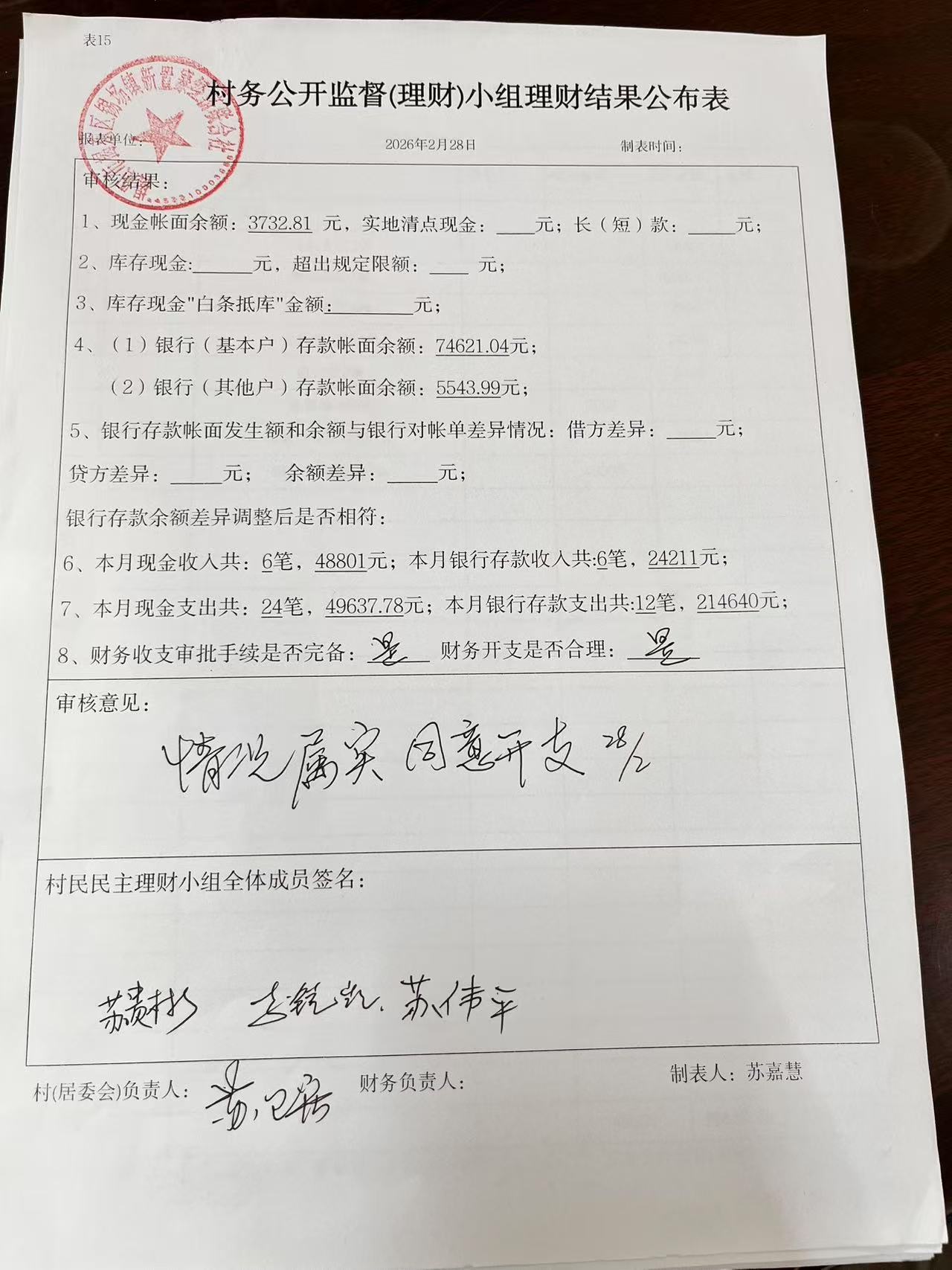 2026年2月村务公开监督(理财)