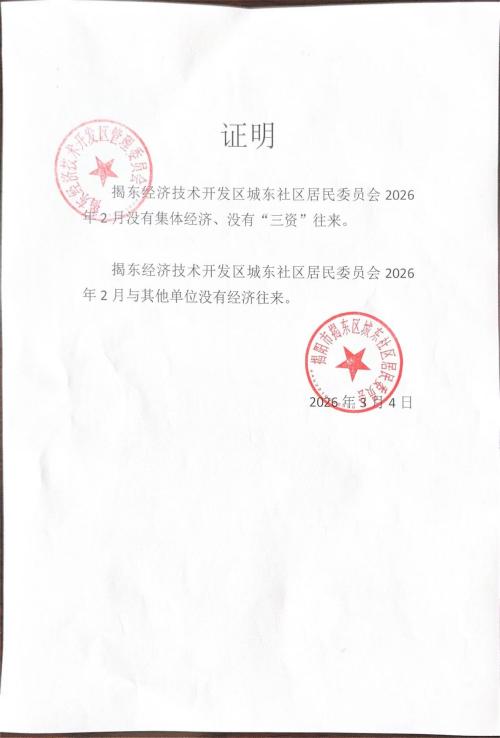 揭东经济开发区城东居委会2026年2月份“三资”情况