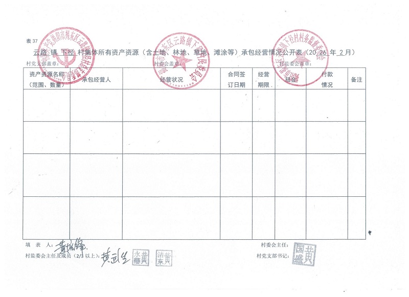 云路镇下径村集体所有土地、林地、草地、荒地、滩涂的承包经营情况2026年2月
