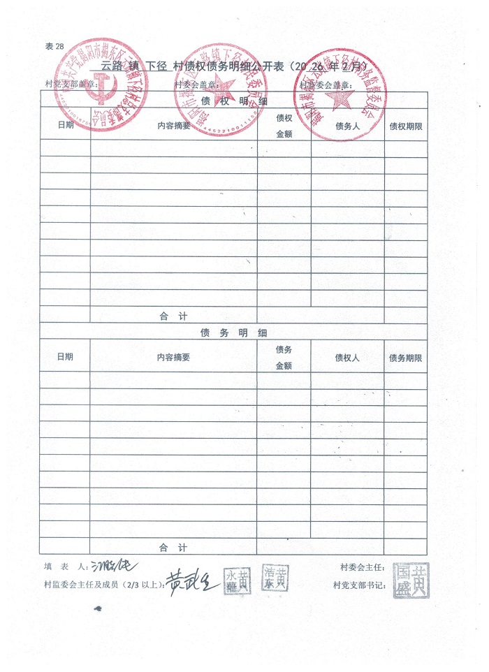 云路镇下径村债权债务明细公开表2026年2月