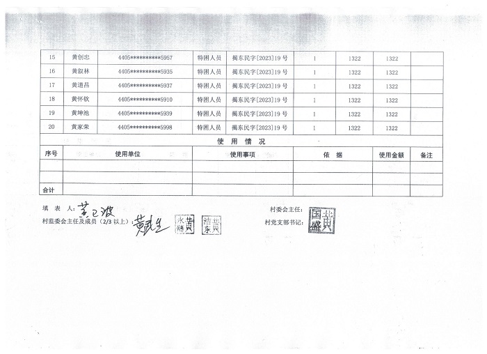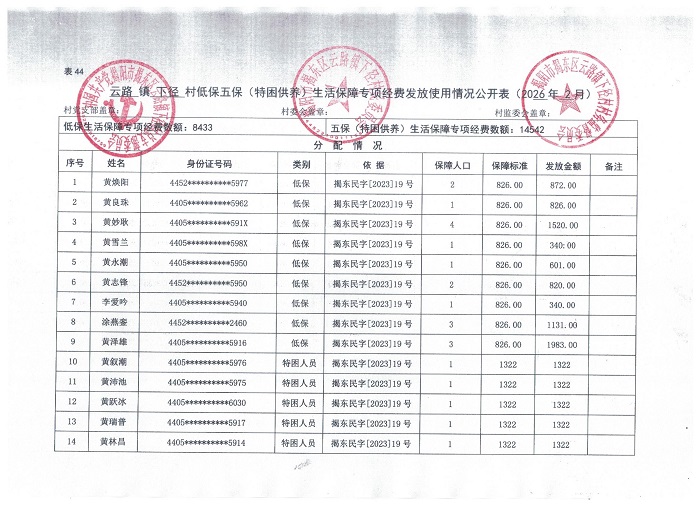 云路镇下径村低保五保(特困供养)生活保障专项经费发放使用情况公开表2026年2月