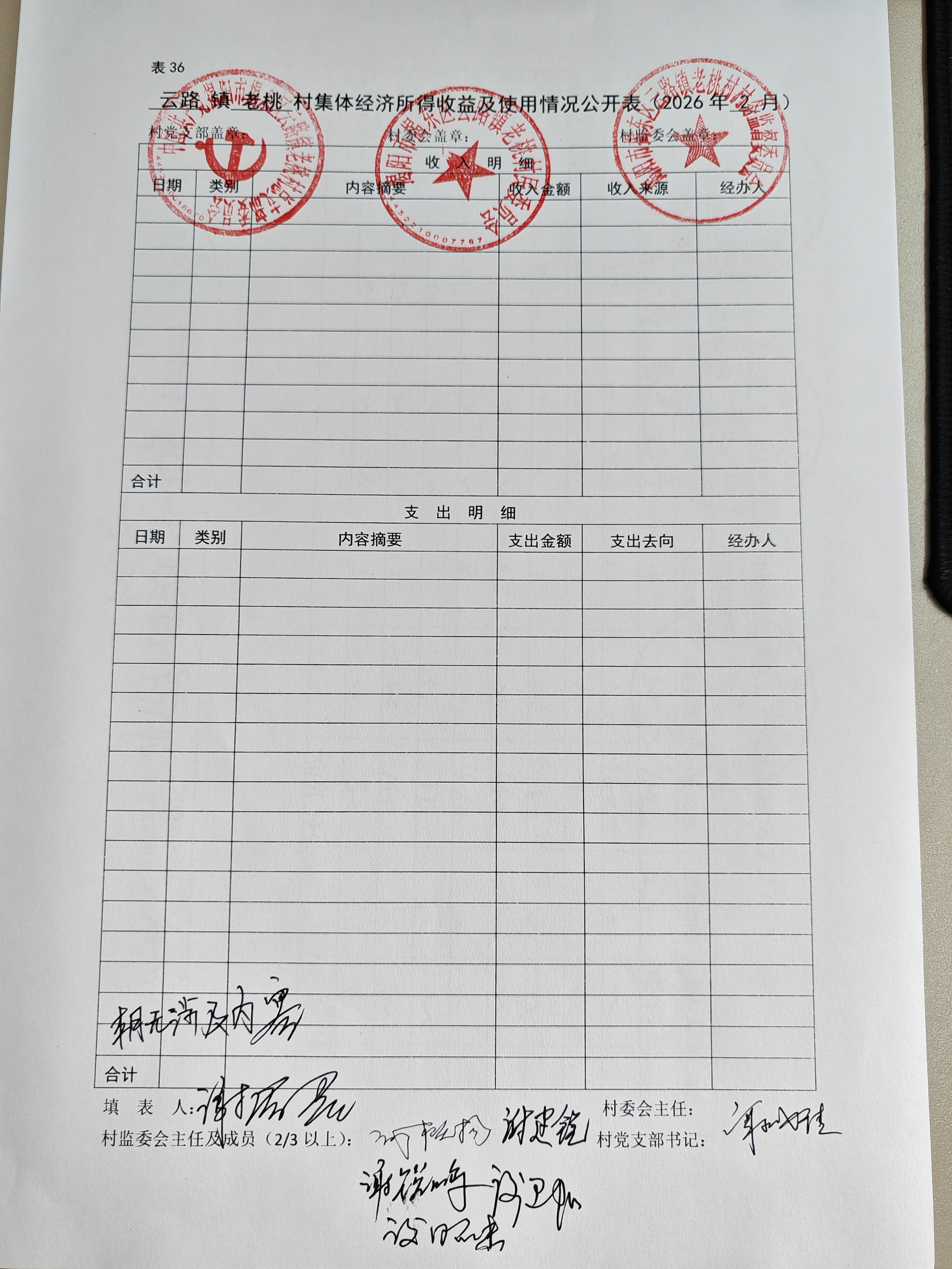 2026年2月份云路镇老桃村集体经济所得收益及使用情况公开表