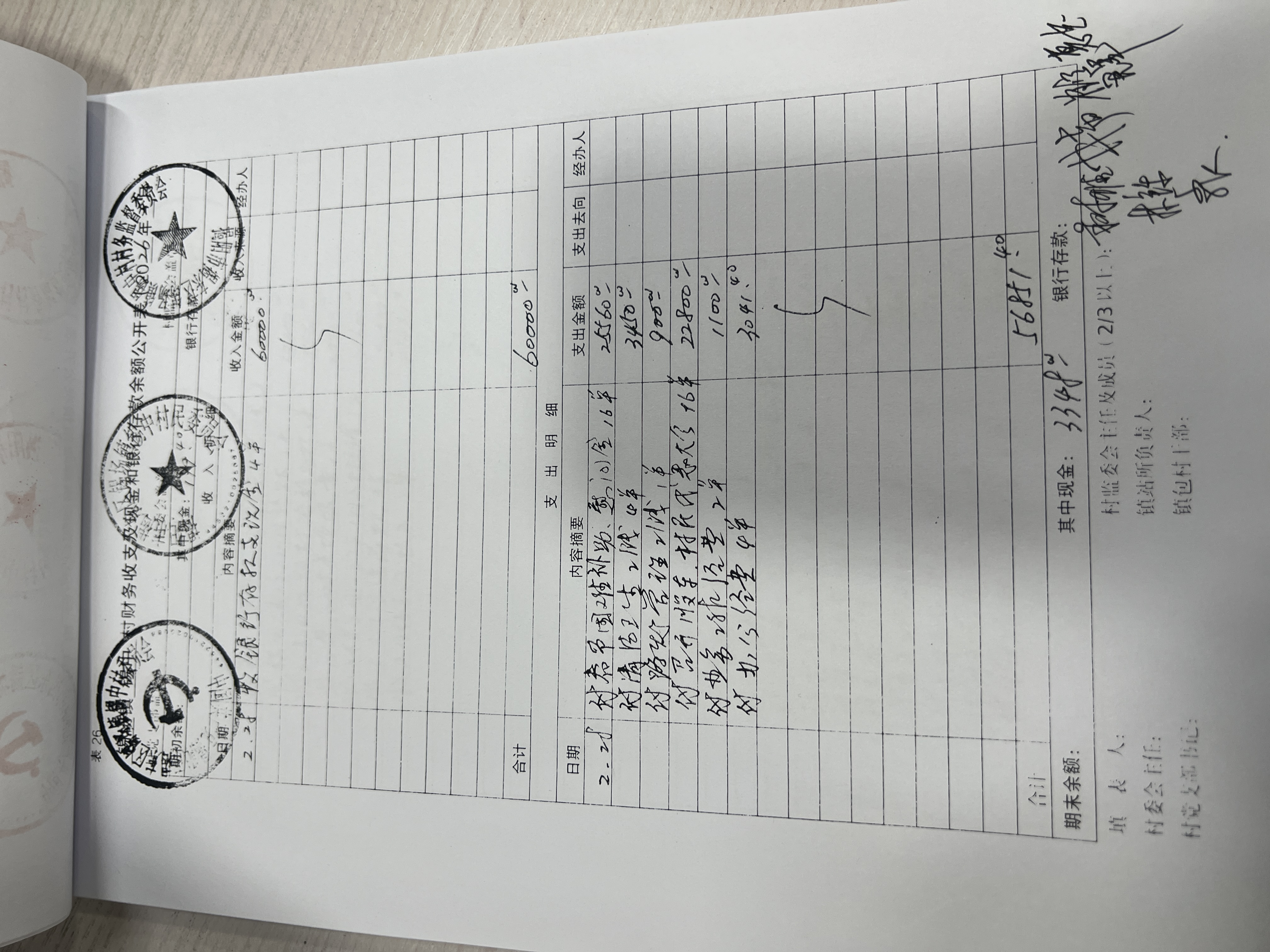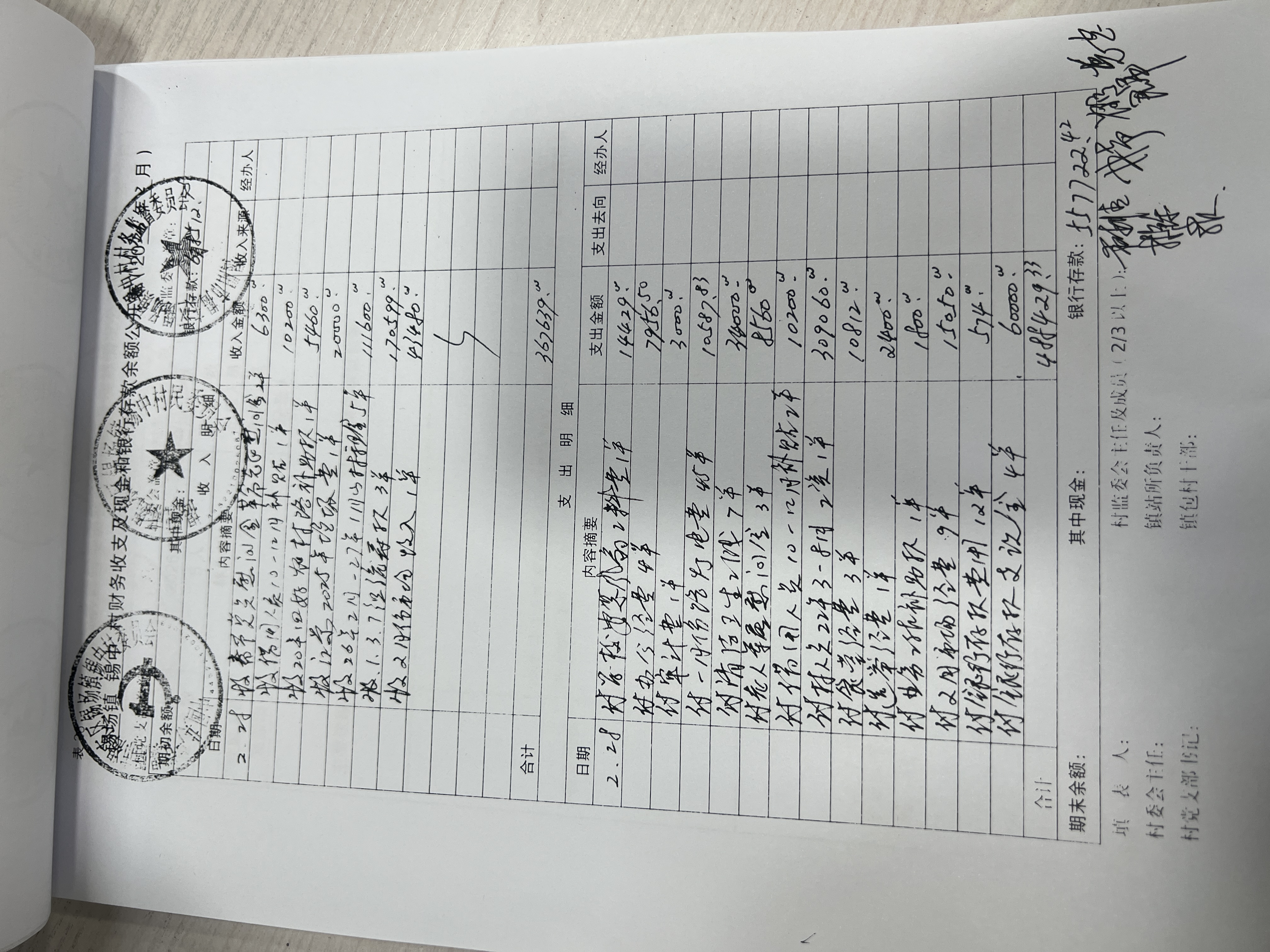 (2月份)各项收入、支出明细及现金、银行存款余额