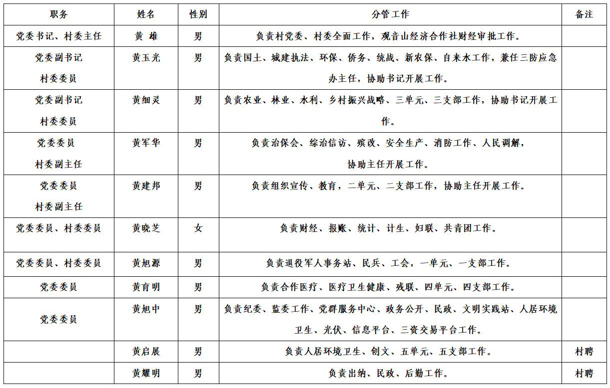 2026年1月份观音山村“两委”分工表