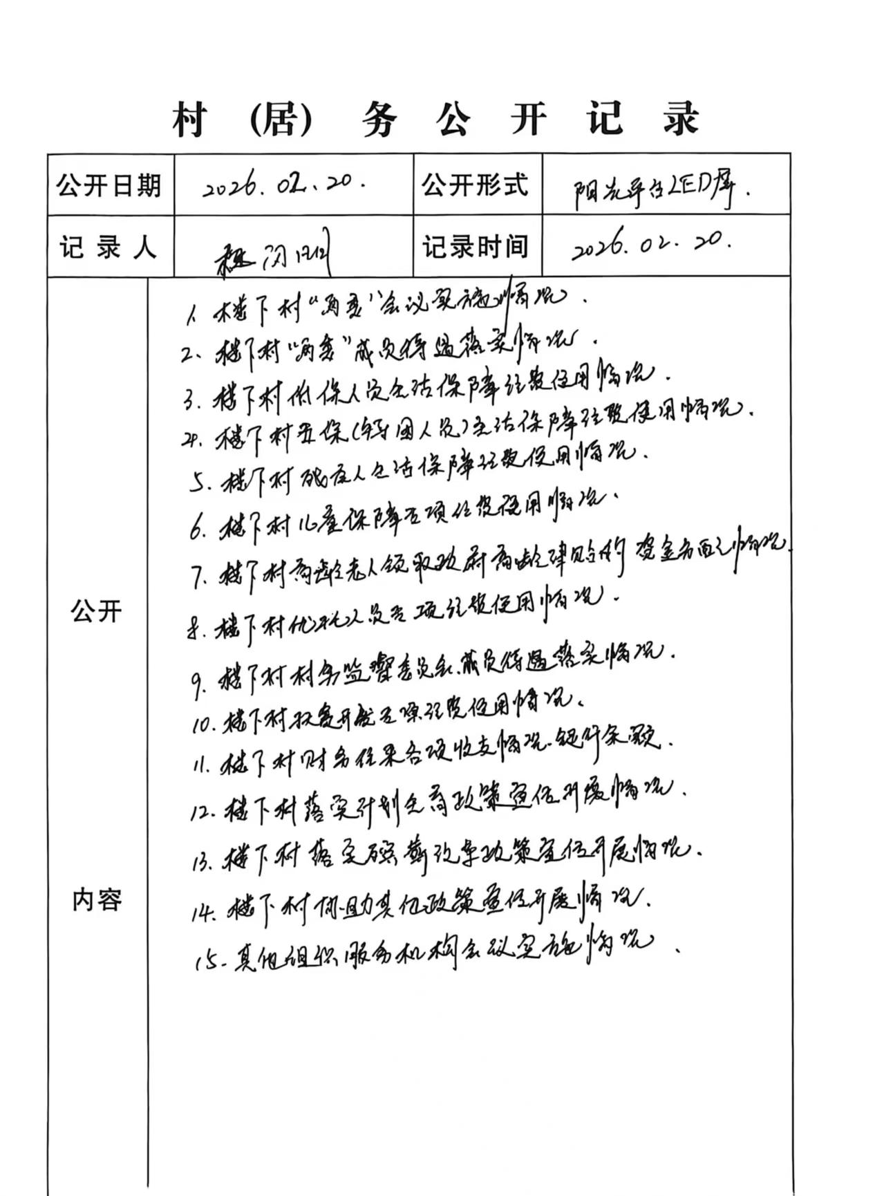 楼下村2026年2月份村务公开