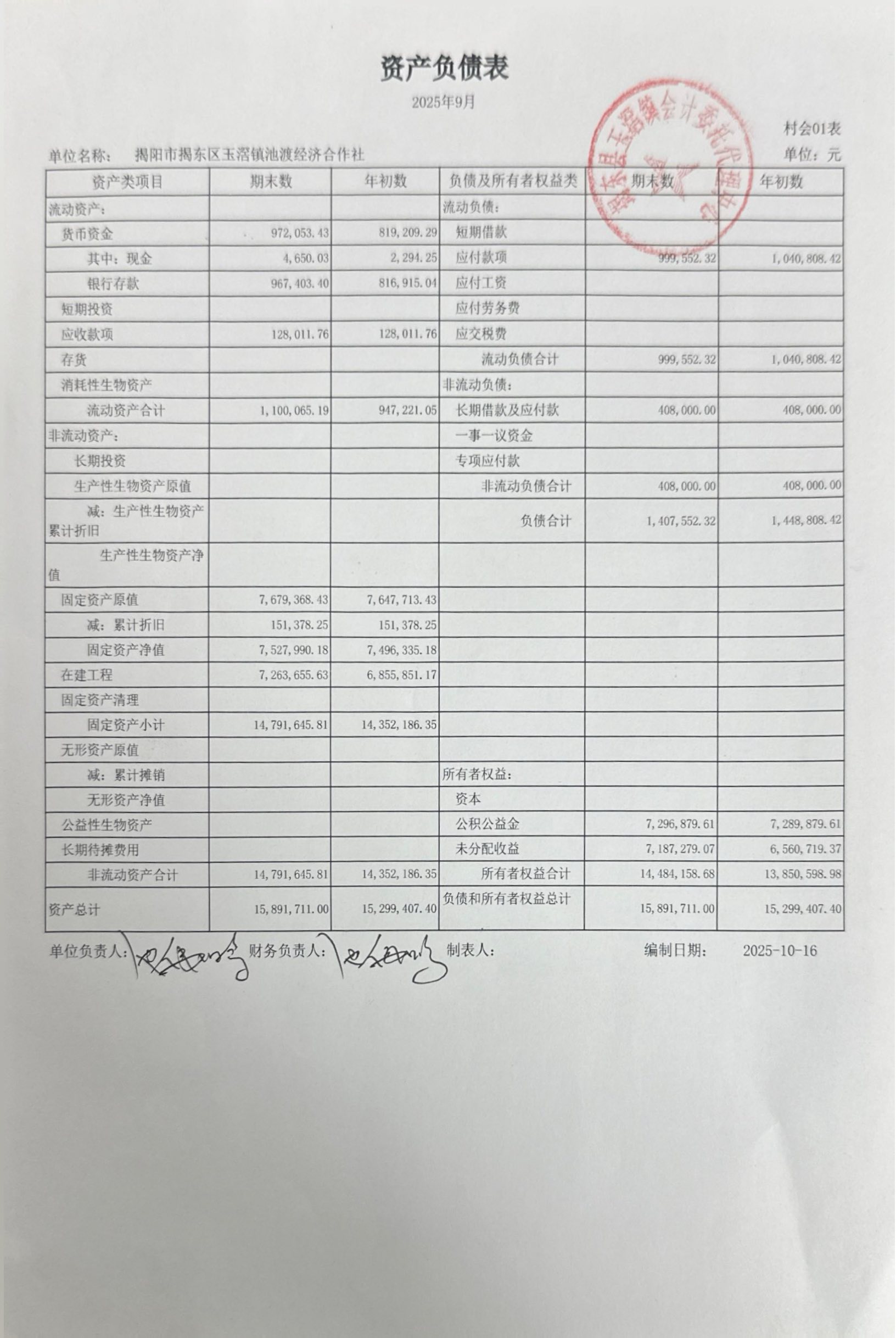 2025年9资产负债表