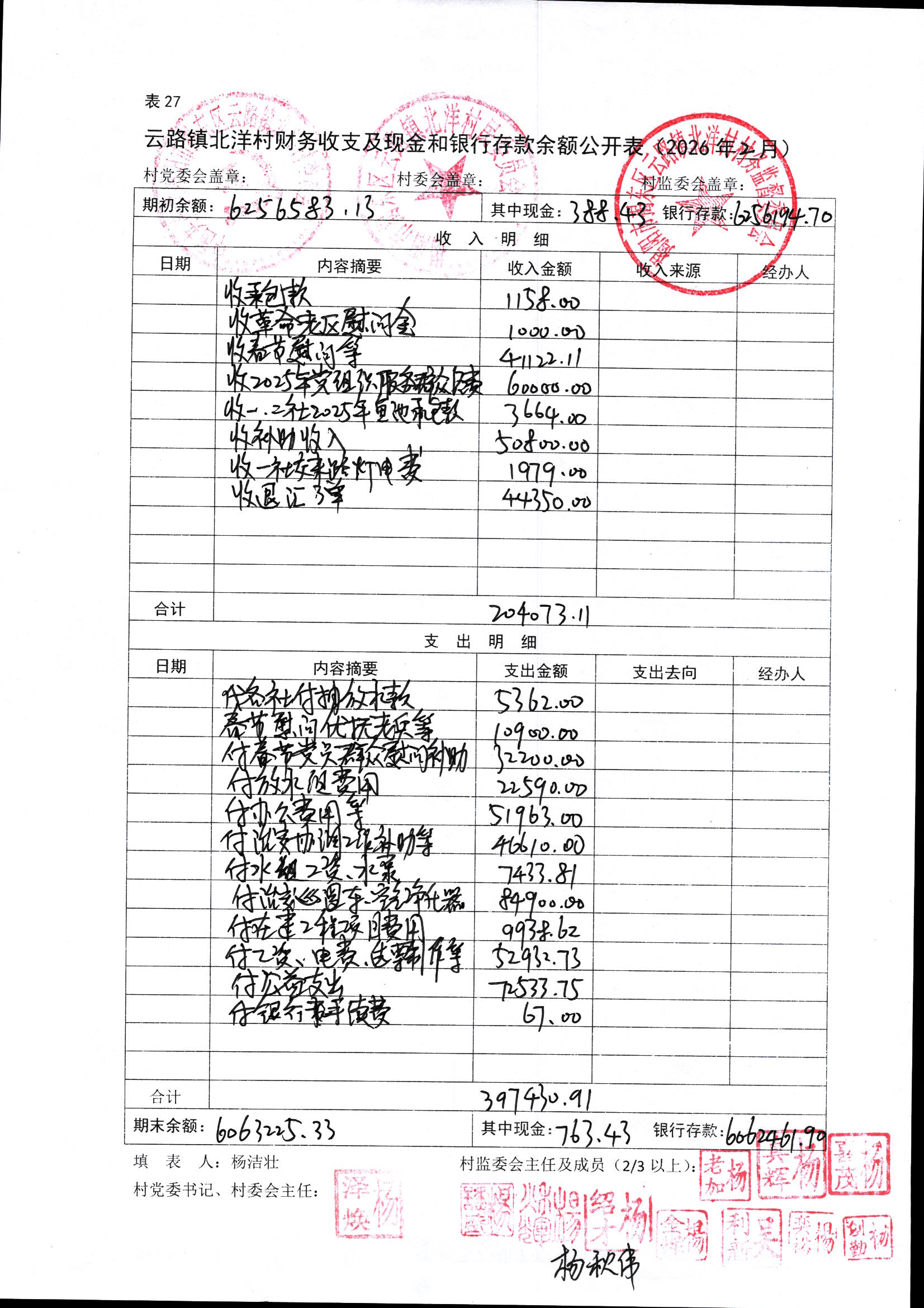 2026年2月财务往来