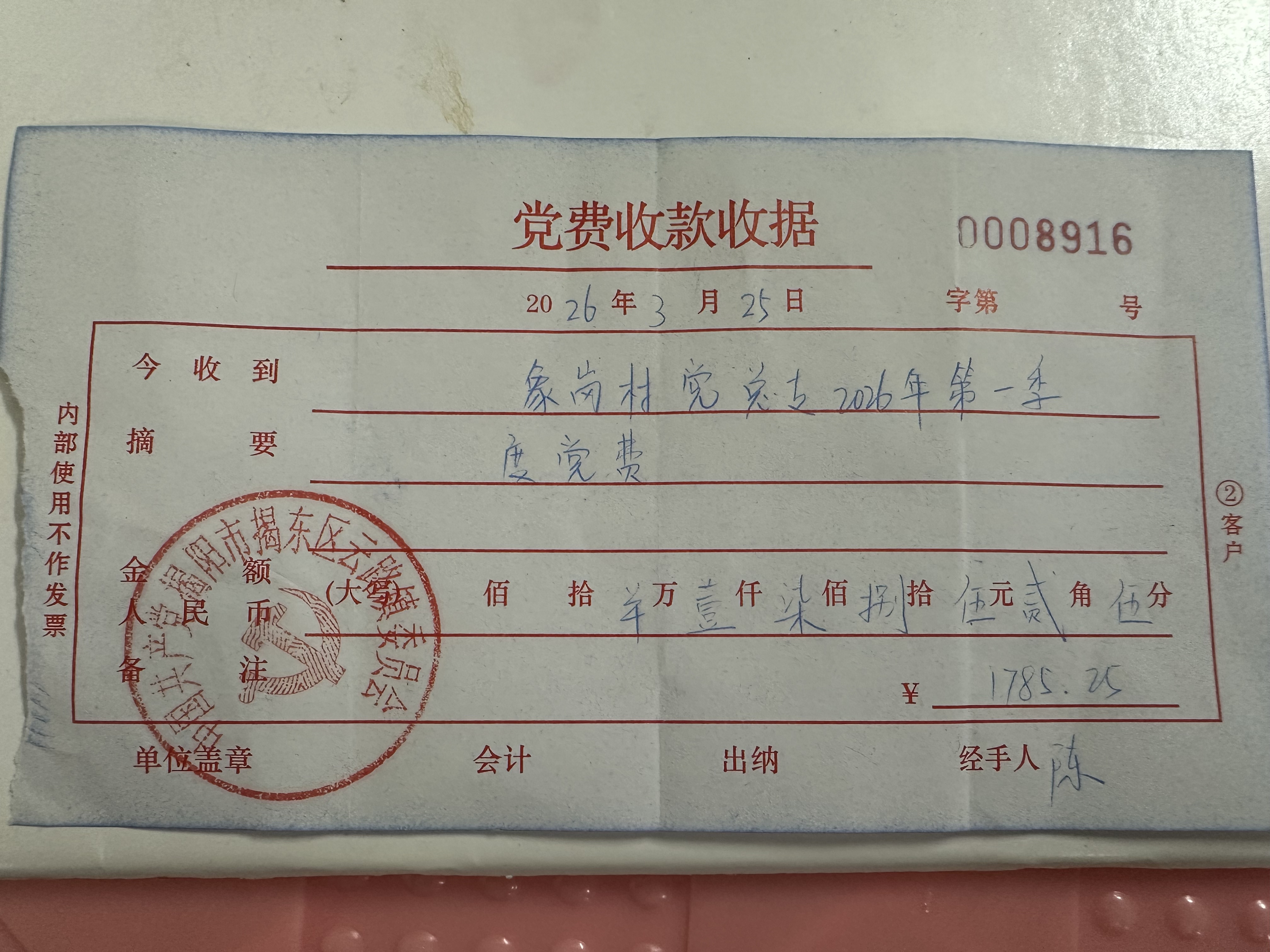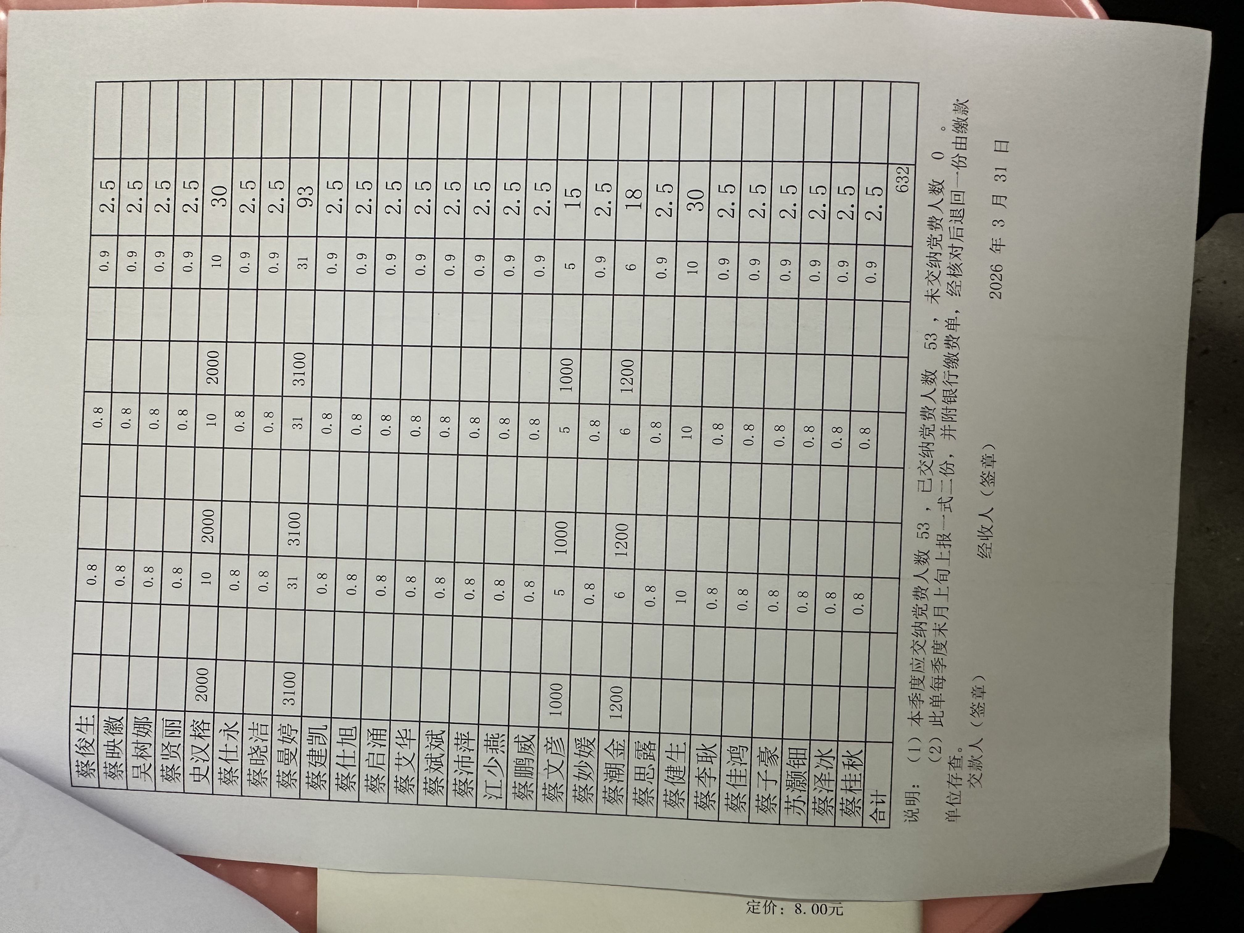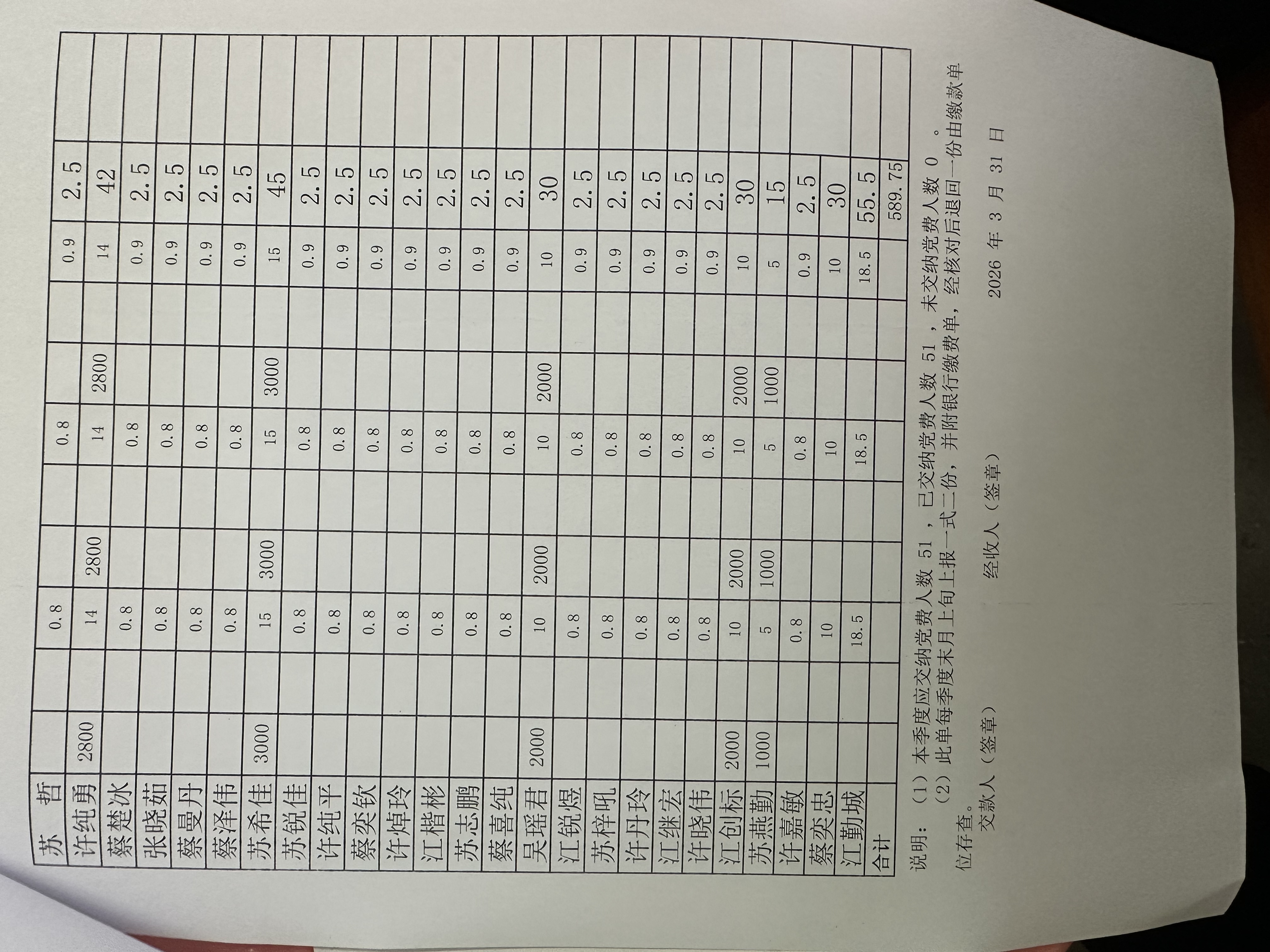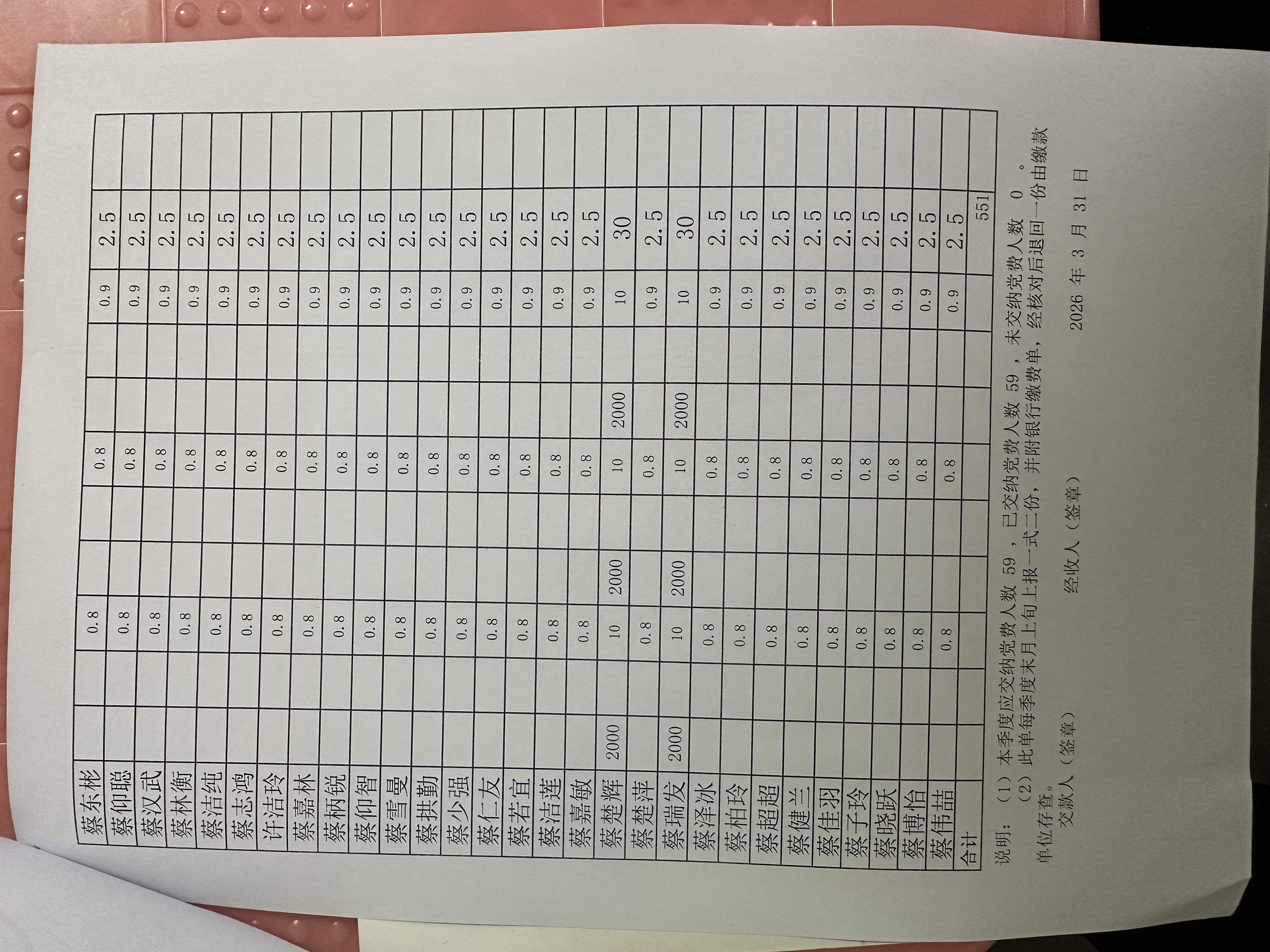 象岗村2026年第一季度党员缴费情况表